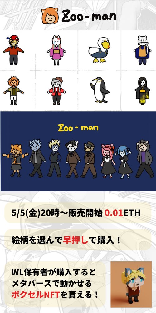 【漫画×NFTのリリース方法】 Zoo-manの漫画公開スケジュール(全員無料で読めます)と希望者へのNFT販売について仕様確定しました! ▶︎ note.com/kazblog/n/nf5e… 購入希望フォームも、記事内に記載しております✍️ 初めてZoo-manを知った方も大歓迎です☺️✨