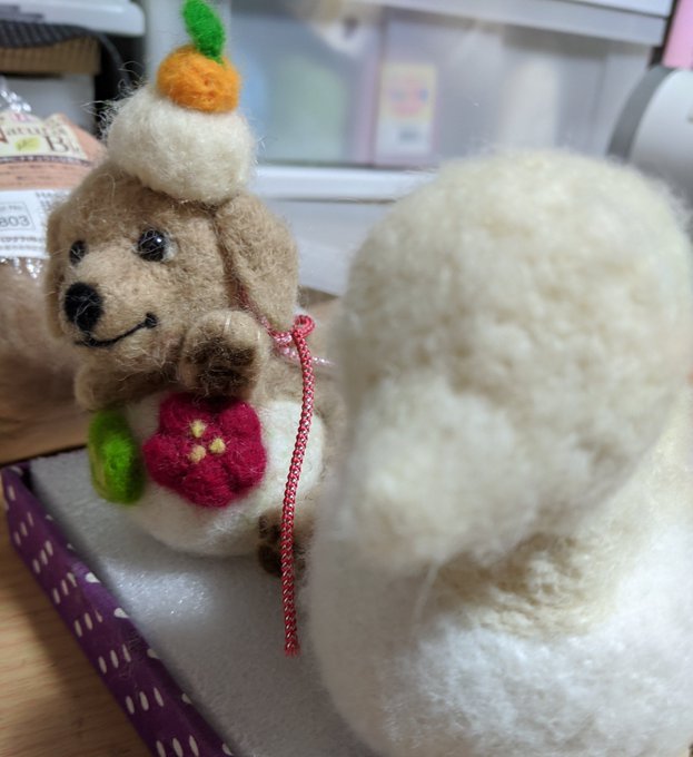 見本完成! 結構たいへんだったぁ😆 土台が柔らかいから どんどん形が崩れて… 毛糸の方が遣りやすいかも… さぁ 次は 来月のイベントに向けて お姉さん達の衣装作りだ! #羊毛フェルト #ポンポンアニマル #茨城県県北生涯学習センターフェルトの会