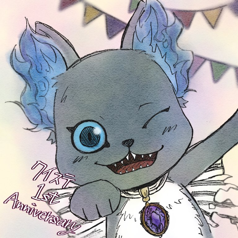 1周年おめでとうございます! いつも、素敵な企画をありがとうございます! 毎回笑いすぎてお腹が痛くなるのですが、そろそろ割れてきそうです😂 クイステだいすき! これからも応援してますーっ! 『おめでとう、なんだゾ~』なグリム描きました♪ #クイステ #クイステ一周年感謝祭