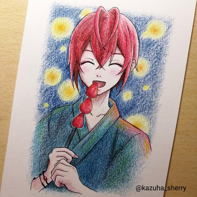 二枚完成したので、まとめて投稿! 浴衣男子なリリア様とリドルくん! リリア様にはお面を、リドルくんにはいちご飴を持ってほしかった♪ · #ツイステ #ツイステファンアート #リリア・ヴァンルージュ #リドル・ローズハート #色鉛筆