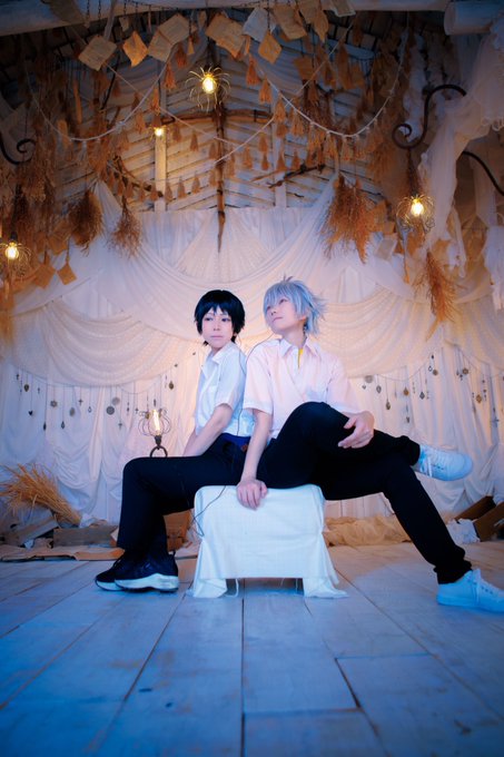 3 12 今日の速報(ネタ/捏造注意) ロンギヌスの槍入刀!! 【⚠︎cos】 シンジ:ういさん カヲル:ゆみ丸さん プロジェクター楽しかった✨ 22/03/03 18:15