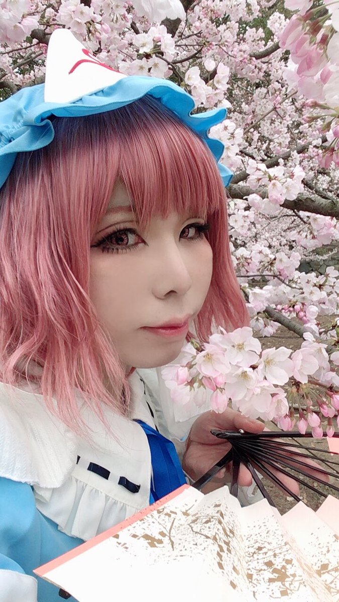 #レイヤーだから盛れたと思った自撮り載せる事をお許してください 1.表現したい幽々子さまドンピシャきたこれ! 2.雰囲気しゅき 3.テーピング過去最大級に上手くいった 4.体の角度なにが起こったの⁉︎ってくらい上手くいった