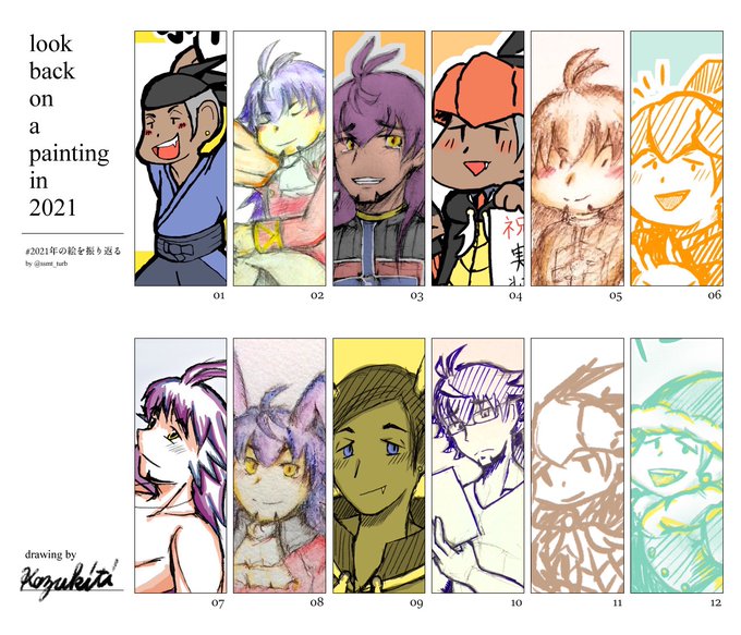 #2021年の絵を振り返る テンプレお借りしました。 落書きも入れたら、月一以上描いてました。 好きってすごいね😆