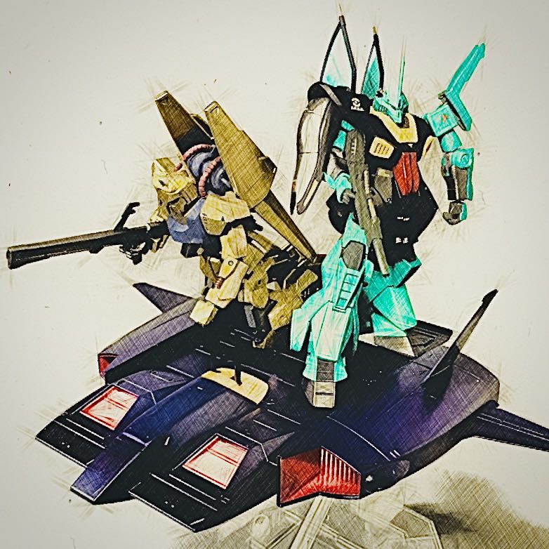 百式だって乗っけたくなるよねぇ〜ん #休日ガンプラおじさん #ディジェ #ドダイ改 #百式 #ガンプラ エモいぞ😂