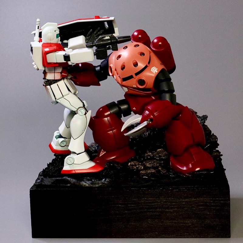 「ジャブローに散る」のジオラマ台座を作ったからみんな見て!全部100均材料でつくったお。 #ガンプラ #休日ガンプラおじさん #ジャブローに散る #攻殻機動隊 ズゴック #ジム