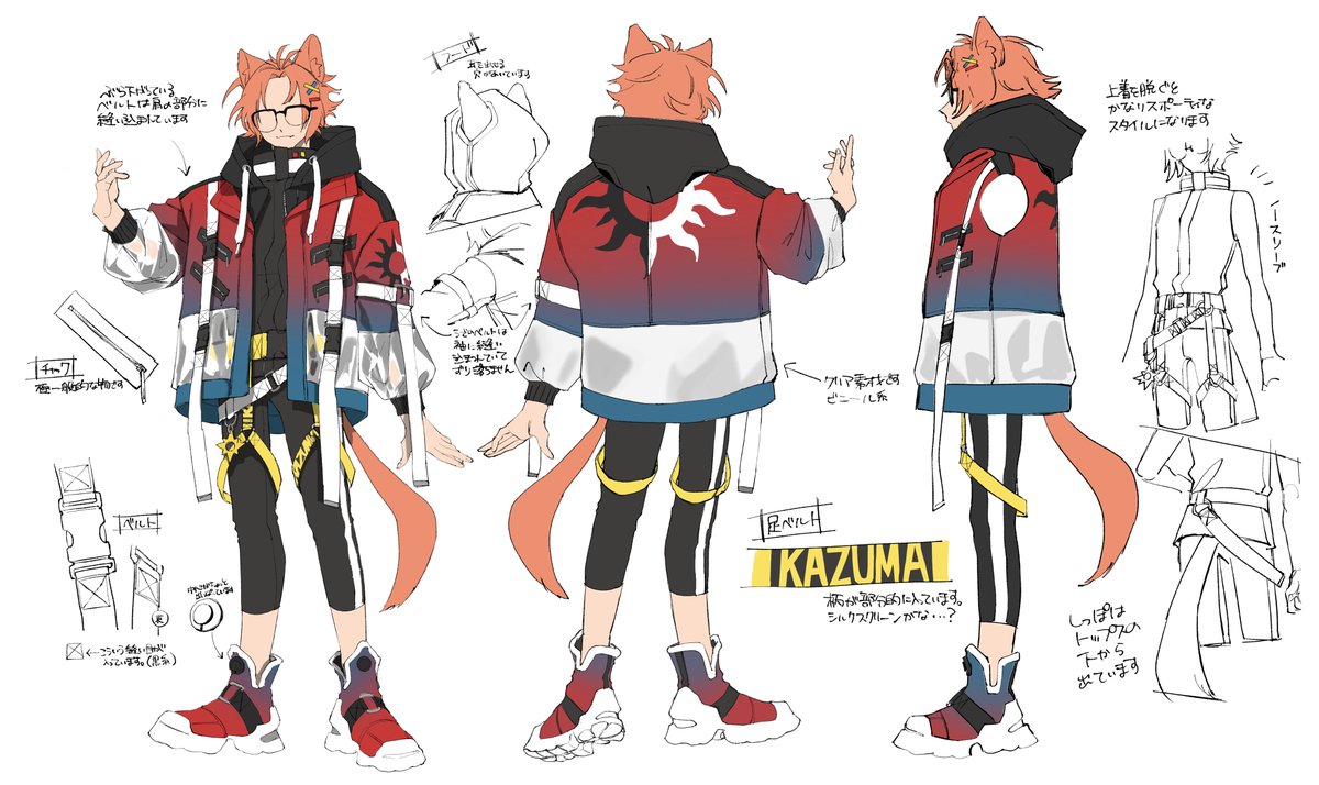 【📢KAZUMA新衣装デザイン画お披露目📷】 新衣装計画中のデザインです!デザインを考えてくださったのはイラストレーター青野ユウ様(@aovex)です!なんと同じ岡山出身! 現在3Dに向け動いておりますが時間がかかるため先にデザインだけ見てみてするぜ📷… twitter.com/i/web/status/1…