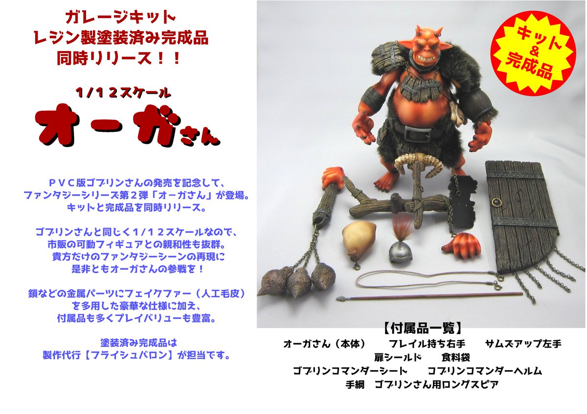 巷で人気の陽気な竿役「ゴブリンさん」のお友達「オーガさん」はキットと完成品の2パターンでの販売です。 キットの金具は組立て済みで、判りやすい説明書つき。 完成品は予約販売で、後日お支払い&配送となります。 #WF2023W #ワンフェス2023冬
