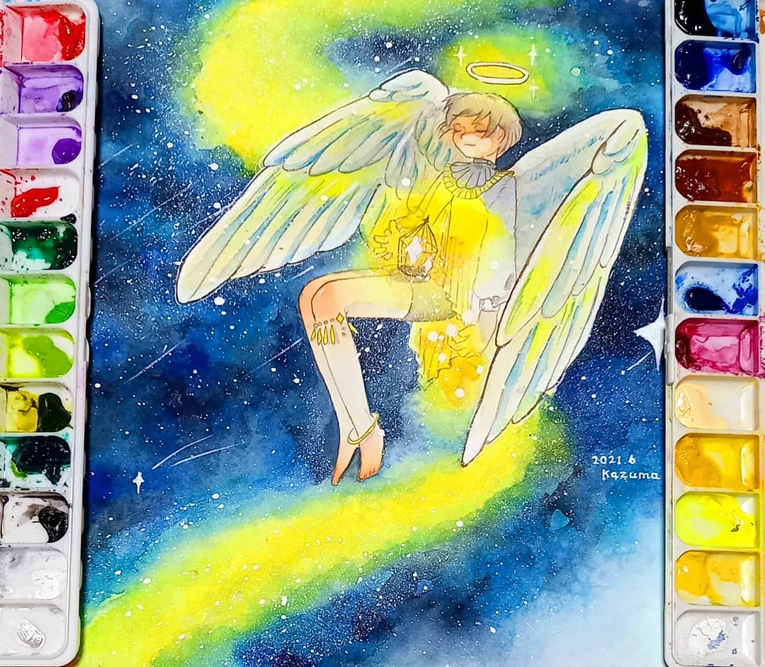 イチマツさんのタグ企画 #一次創作絵師拡散フェス03 に参加します 透明水彩が好きでキラキラしたものを描けるように頑張っている絵描きです✨ お気に入りのキラキラした作品をみてほしいです🖌️