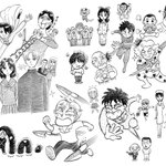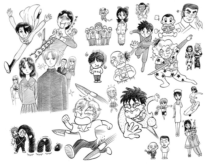 368 877 最近描いた岡田あーみん先生作品のGペン落書きを一枚にまとめました😄(何人かキャラも加筆して) こうやって見ると全部のキャラが濃すぎる…! 23/06/22 11:55