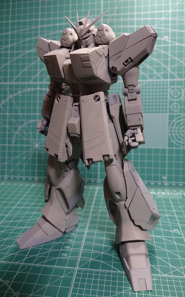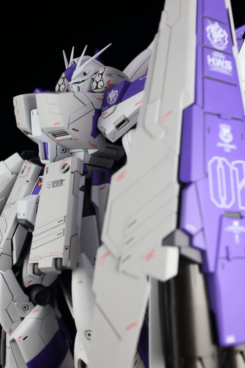 MG Hi-νHWS完成しました! ディテールアップを主体に HWSは本体の白とは変えて グレー寄りの配色。 ファンネルは本来のグラデではなく ブロックパターンにしました。 八展、山梨展示会に展示予定です。