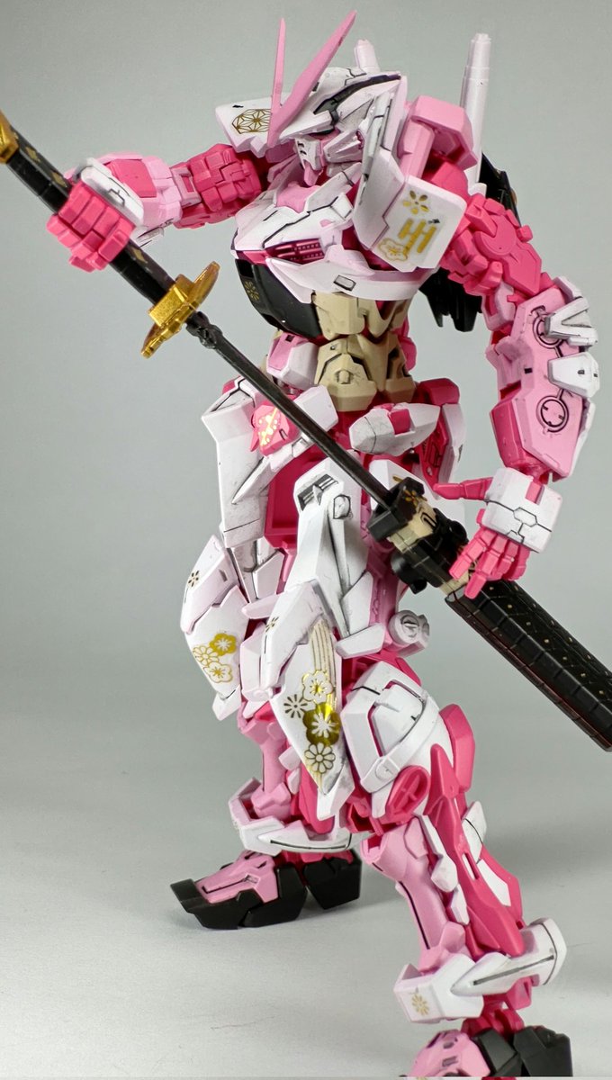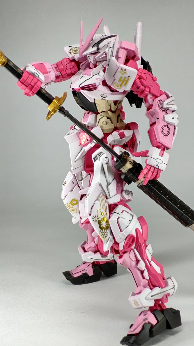 RG レッドフレーム完成👍️ カラーリングは春らしいピンクにしました😆 可愛い感じになるかと思いましたが、意外とカッコいいです😊 #今月作ったプラモ晒そうぜ #ガンプラ