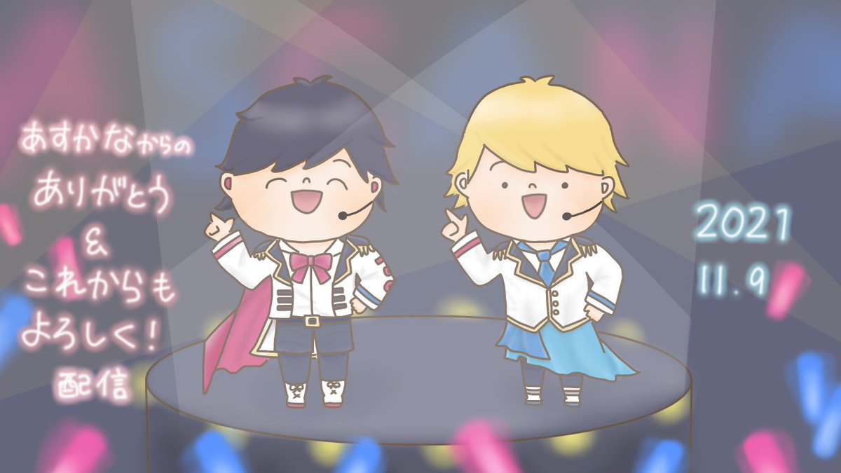あすかなちゃんと姫ぴめとにこにこしてお話していられる時間が大好きだよ〜❤️💙 🎤今日も一日頑張ろって思える応援ソングとかどうかな??🤔✨ 離れていてもなるべく距離感を感じないように、心は繋がってるよ〜みたいな歌詞とかどう〜??🥰 #あすかなと姫ピメの楽曲ミーティング #あすかなアート