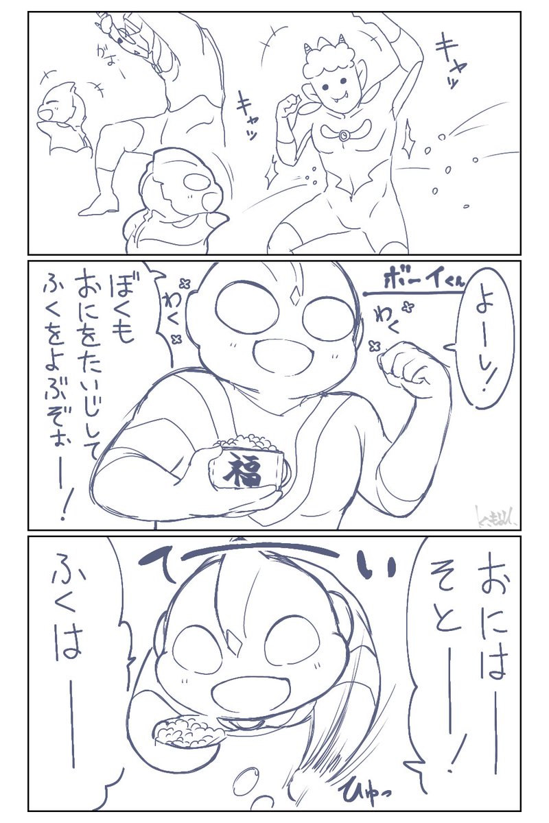 15 68 毎年過去絵ばかりで申し訳ないんですが節分の日なので再掲👹 5000歳未満の子達にボランティアで鬼役をするグレートさんとパワードさん 23/02/03 18:59