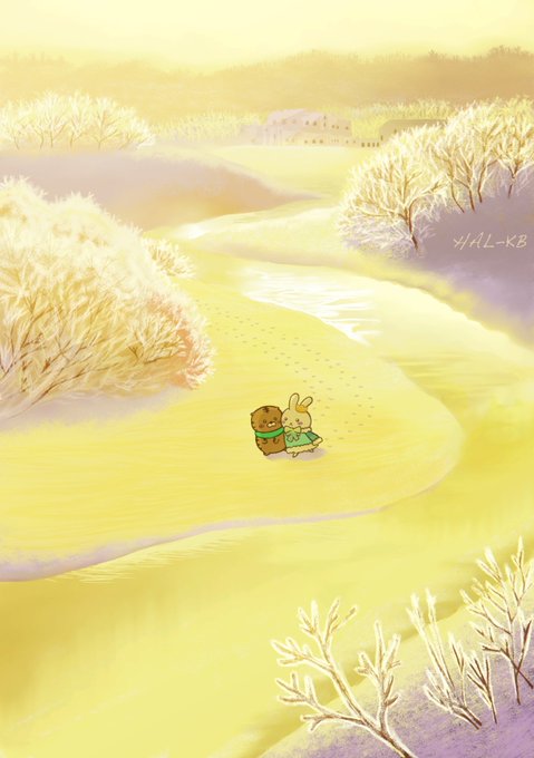もうちょっと、一緒に歩こう?🐰🐯 #イラスト #illustration #うさぎ #とら #黄昏時