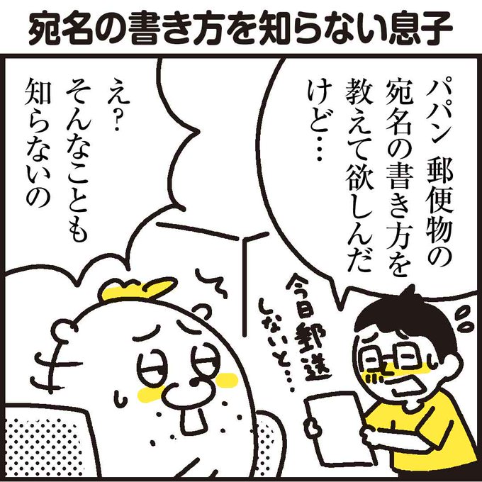 うちの息子が英語は書けても #宛名の書き方を 知らない件 - 漫画 「新ちびといつまでも」〜育児と 暮らしと 乳がんと〜 続きはブログでどうぞ↓ chibiitsu.blog.jp/archives/38261… #ちびいつ #4コマ漫画 #コミックエッセイ #育児漫画 #漫画が読めるハッシュタグ