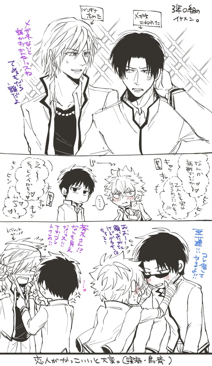 窪海と鳥斉(3年生)紫二人のイケメンさよ〜〜〜〜〜〜取られたくないから隠さなきゃねっていうやつ
