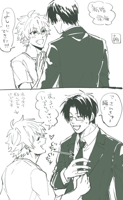 お題箱より、25歳で結婚する窪海。新婚の朝です。25歳に見えないし汚くてすいません…!!25歳結婚本出したいです…はよ描け…