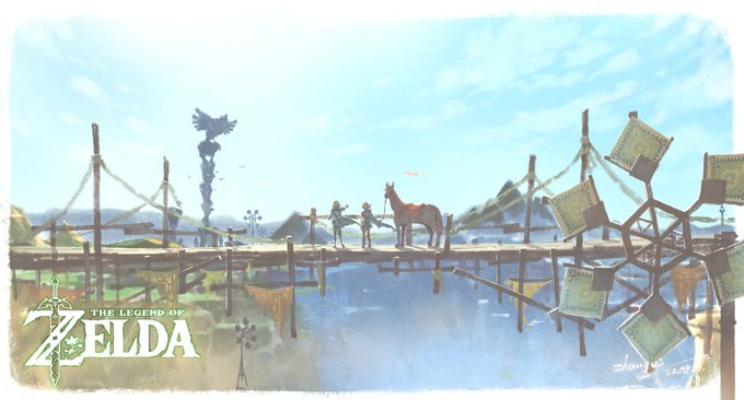 タバンタ大橋で龍をみる〜 #風景 #リンク #zelda #ブレスオブザワイルド #リンゼル #BotW #ゼルダの伝説 pixiv.net/artworks/10045…