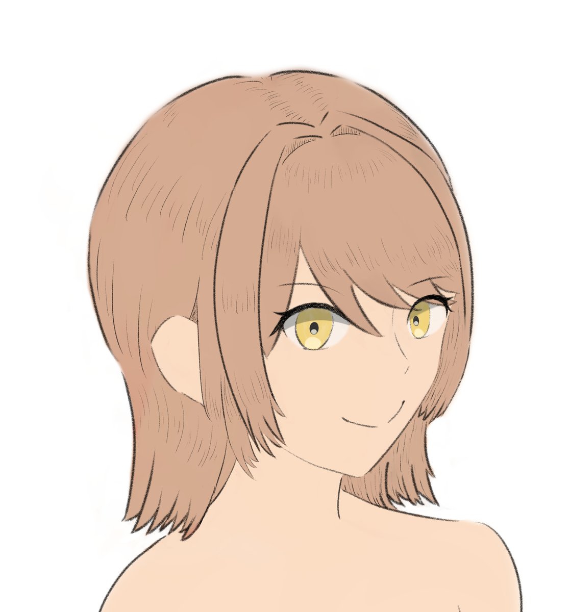 0 4 髪を色面で描くテストだったけど、顔がいい感じにできたので塗りまでやって完成。骨格から描くのいいわね…… #イラスト 22/08/08 11:48