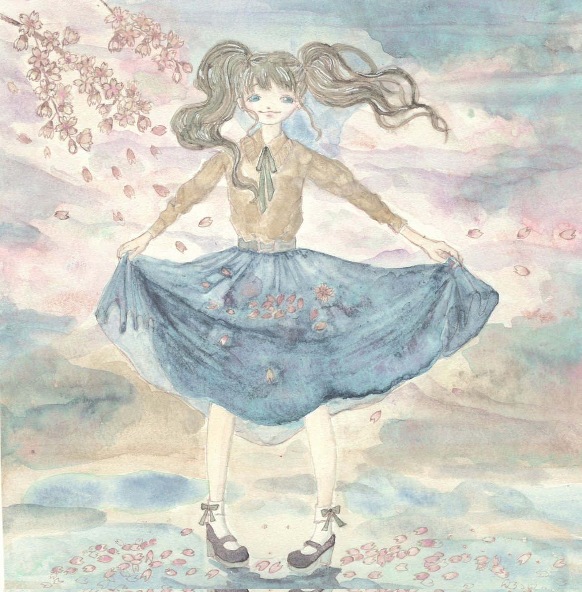 明日以降の営業時間です!! スキャンデータにはうつらないキラキラとハンドメイドの水彩絵の具の繊細な色合いをみていただけたら嬉しいです🎵 よろしくお願いします #イラスト #3パターン展 twitter.com/be_sora2nd/s…