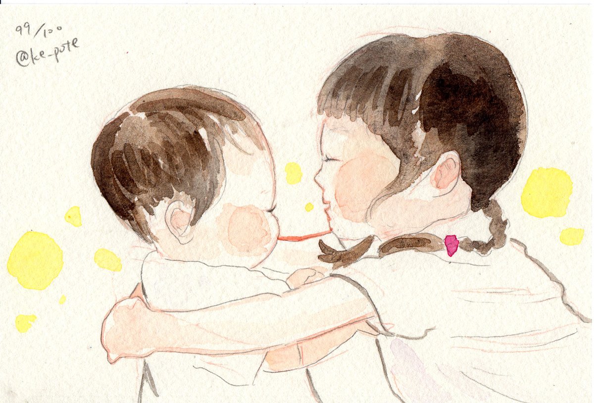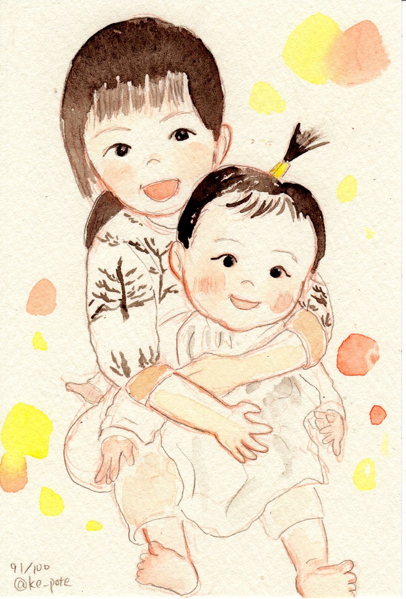#100日チャレンジ 今日はがっちゃんさんのお子さん達描かせていただきました! ぎゅーするタイミングがなかなか合わなかったけど合った瞬間だそうです☺️ かわいいお写真ありがとうございました! @gachancom