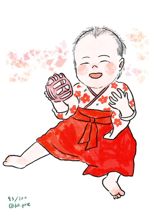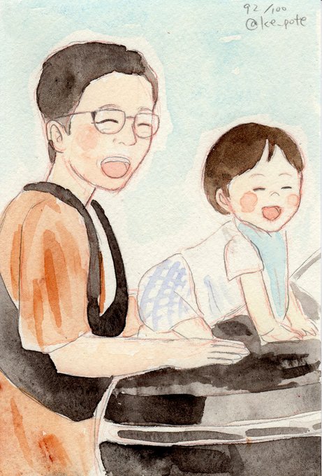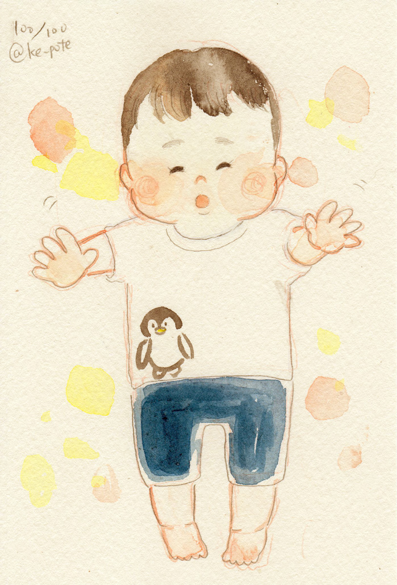 #100日チャレンジ 今日寝落ちしたら台無しなので先に投稿しときます😅 1歳ごろ、歩き始めたころの息子の動画を見返して描きました。 これで100日連続で毎日絵を描くのおしまいです、見てくださってありがとうございました!