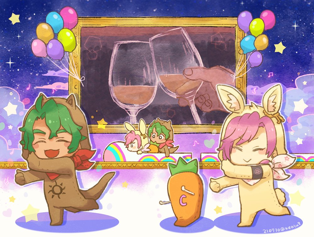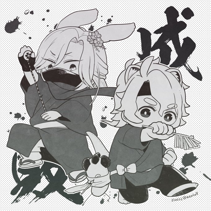 🈵成⚔️敗🐰 (鈴🈵くんの後衛でさらに応援をするふたりのつもりで描きました) twitter.com/kealu8/status/…