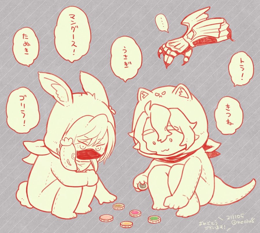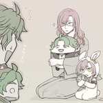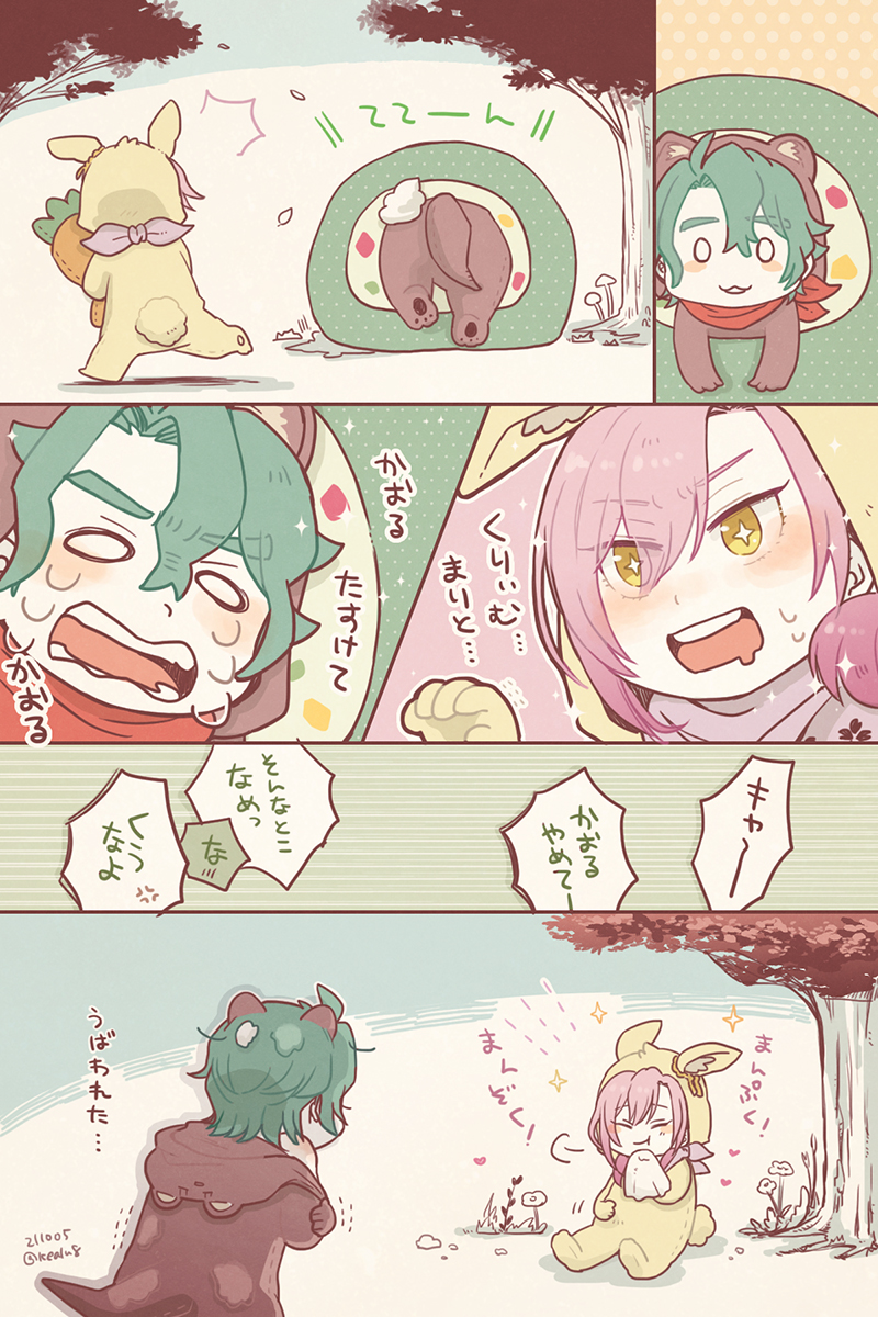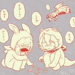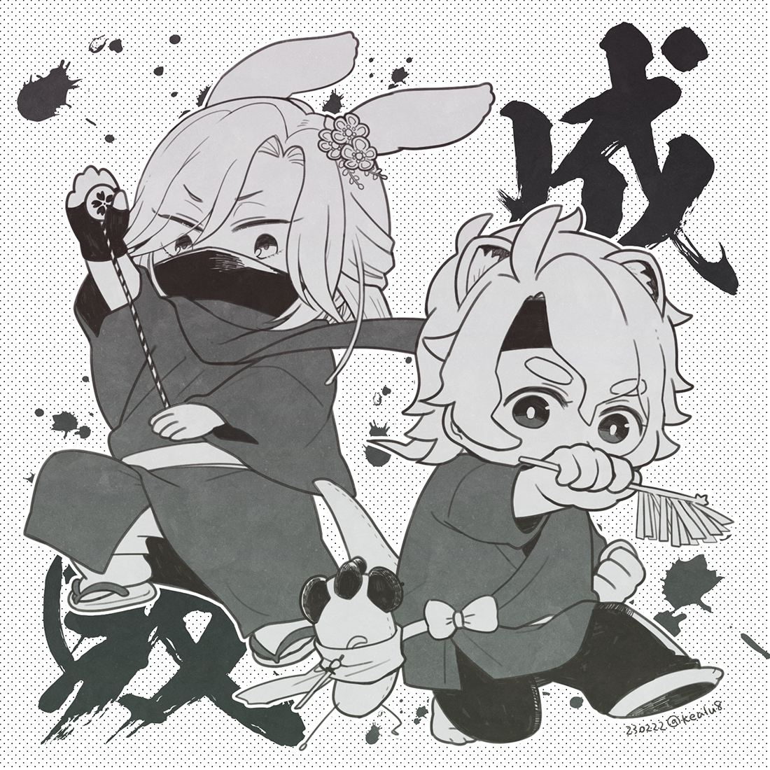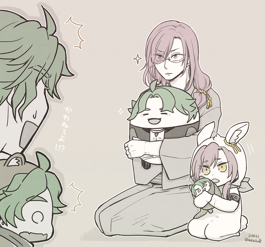32 154 🈵成⚔️敗🐰 (鈴🈵くんの後衛でさらに応援をするふたりのつもりで描きました) twitter.com/kealu8/status/… 23/02/22 01:06