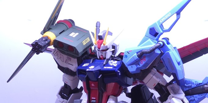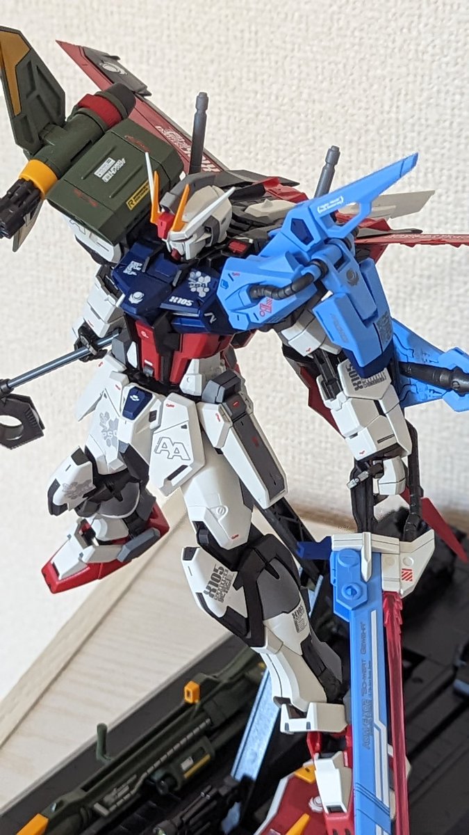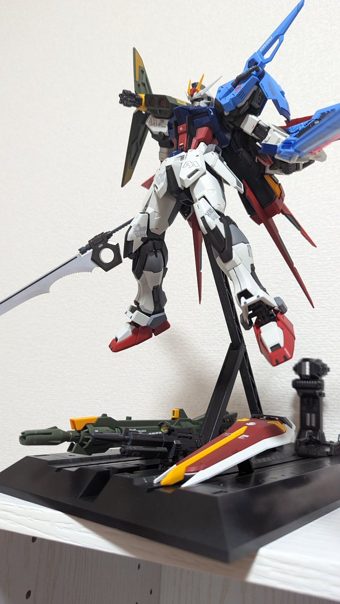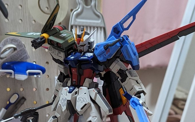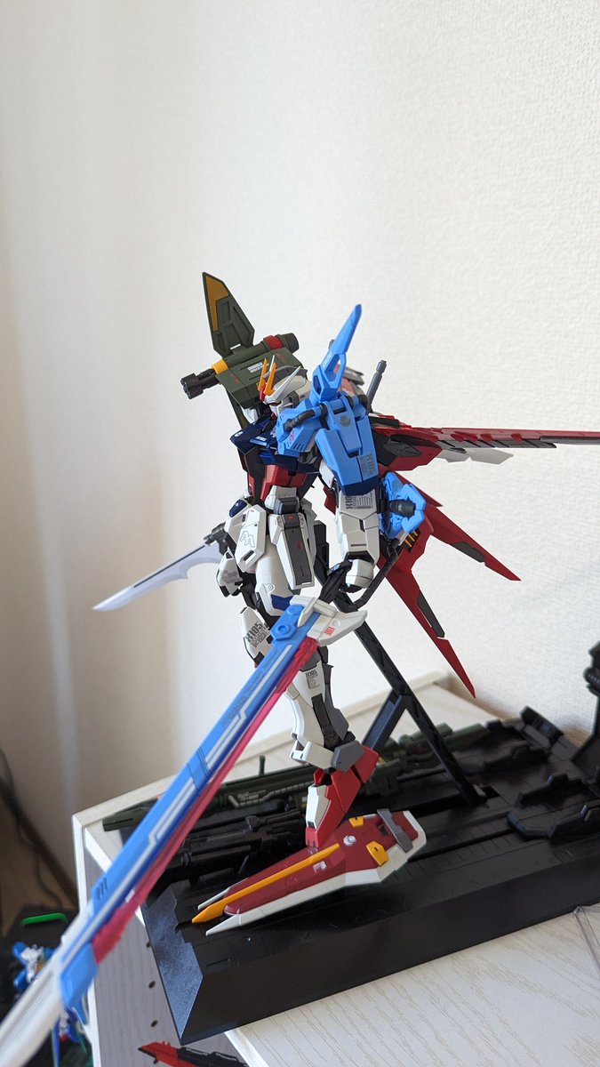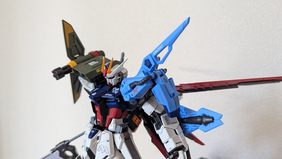 MGパーフェクトストライクガンダムグランドスラム装備型完成です!! 撮影ボックス収まらなかったので普通に飾って撮影😭 初めてのMG、今までで一番時間かかりました…! #ガンプラ #ガンプラ好きと繋がりたい #ガンプラの画像を貼るとRTされると聞いて