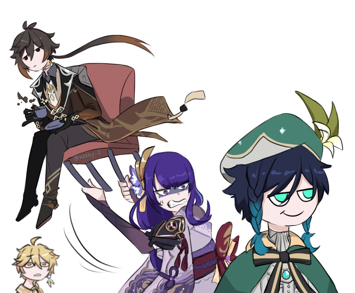 i imagine an interaction like this would actually happen between the 3 archons #genshinimpact #genshinimpactfanart #原神 #zhongli #raiden #raidenshogun #venti #aether