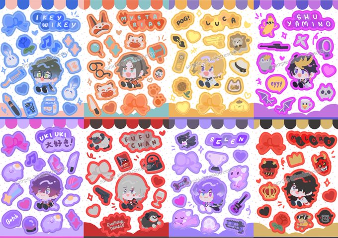some small sticker sheets for animangaki! hoping to make everyone as soon as i can 🥺 #Ikenography #MystArt #drawluca #YaminoArt #VioletAtelier #Artchivist #Artsuki #Akurylic