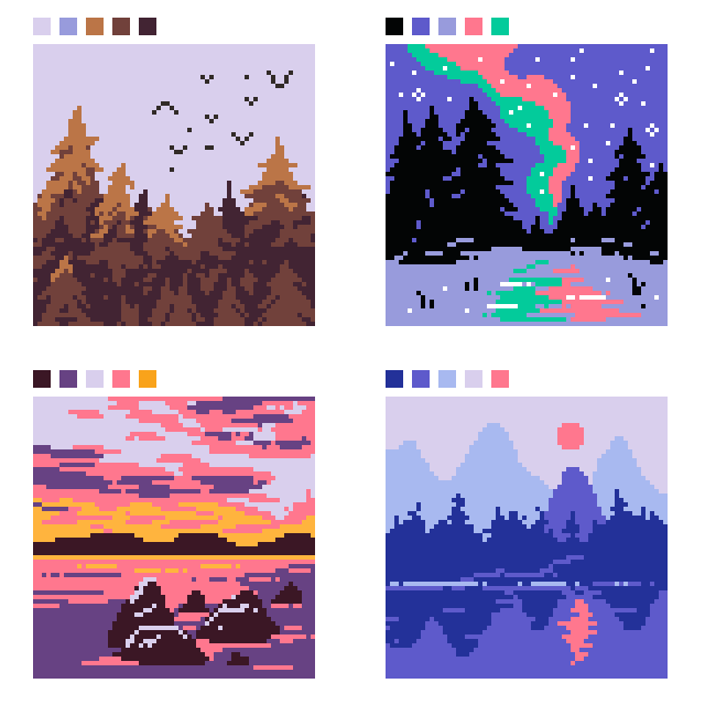 Made some pixel landscapes using limited color palettes 💙🌳 #pixelart #pixel #art #artist #illustration #artstudy #artwork #aesthetic #landscape #colorpalette #pastel #Procreate