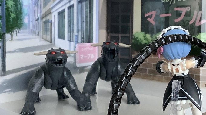 魔獣魔獣 さてと 武器が幅とるので普通のレムに戻す #デスクトップアーミー #リゼロ 発売日購入してから結構経ってるのだけど 本日はじめて手首が回らないことに気づく 奥の2匹はプレモ(ゴーストバスターズ)