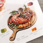 Commission: Steak Plate as a flash tattoo 🥩🫠 #KeevaPaints #watercolorpainting #foodilluatration twitter.com/keevapaints/st…