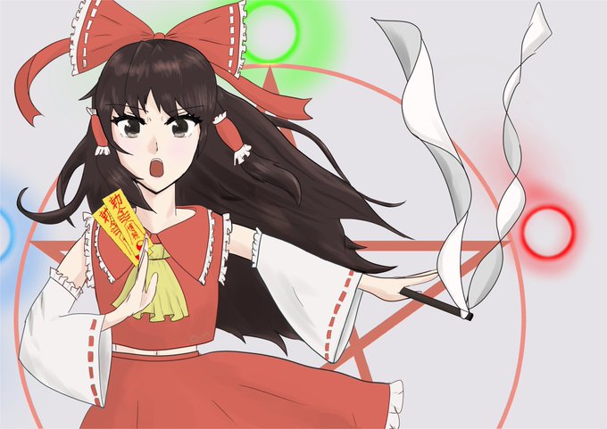 #東方project #博麗霊夢 #お絵描きさんと繋がりたい 「私は楽園の巫女、博麗霊夢である!」 霊夢を1番表現しているのは深秘録のセリフかなぁ。強そうw 深秘録の時のリボン青いけど。