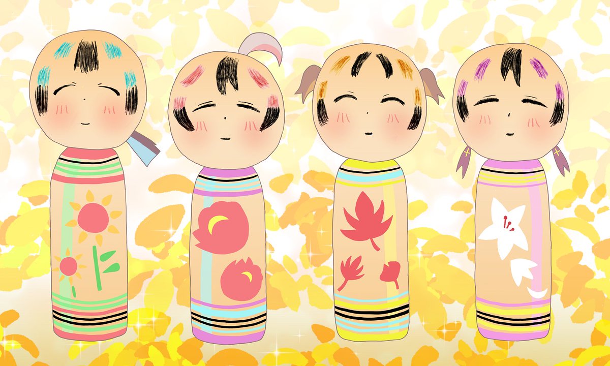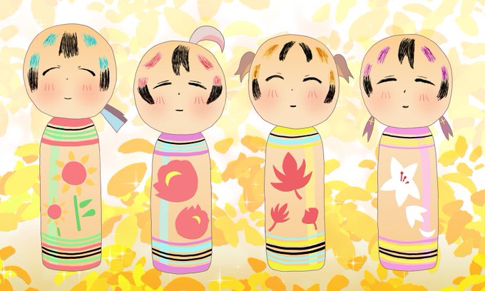 あああああああ 途中から何か違和感があるなと感じていたんですが、 いつの間にか あさひ と もみじ が逆になってしまっておりました・・・ こけし修正版をアップします #おにまいお絵描き