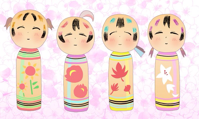 14 61 あああああああ 途中から何か違和感があるなと感じていたんですが、 いつの間にか あさひ と もみじ が逆になってしまっておりました・・・ こけし修正版をアップします #おにまいお絵描き 23/04/03 01:21