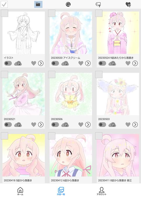 6 23 最近の落書きを。体調崩してから微妙ね・・・ 左上のやつ30分で力尽きたので後日清書?して色塗りますね #おにまいお絵描き 23/06/05 23:08