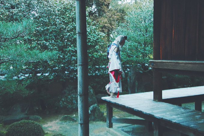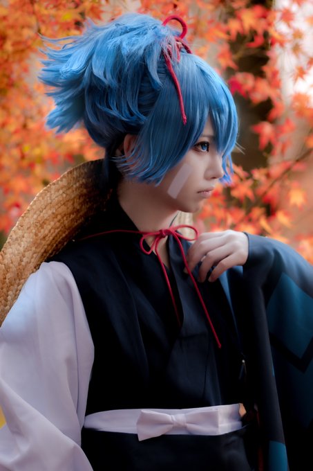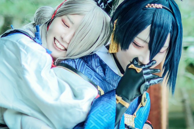 刀剣乱舞/cosplay とあるお寺に行った時、小さくて白い不思議な子が青い着物を着た男性を守りながらこちらをずっと見ていた。 _______ 三日月宗近:ゆきじるし photo:夏子