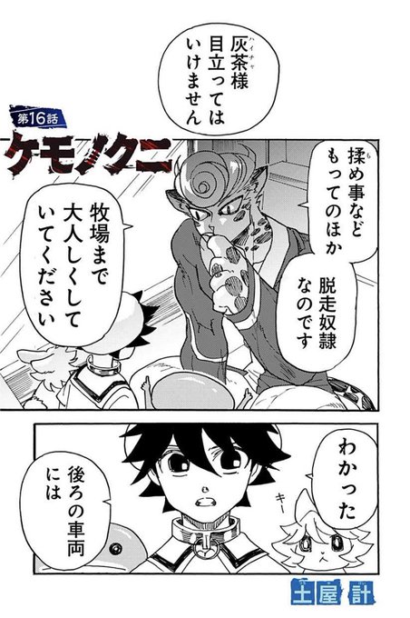 ケモノクニ15話配信🐌 🐌人が家畜の世界で暮らす人の子灰茶 3日間の閲覧数で原稿料が変わります 応援よろしくお願いします!!!! 全話無料⬇️ shonenjumpplus.com/episode/485600… 🐌次にくるマンガ大賞の投票はこちら⬇️(webマンガ部門)7/10締切 tsugimanga.jp/nominate2023-w…