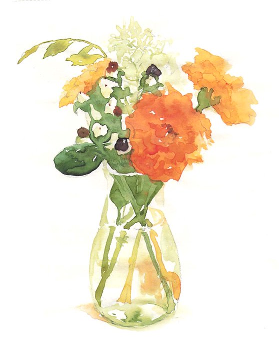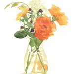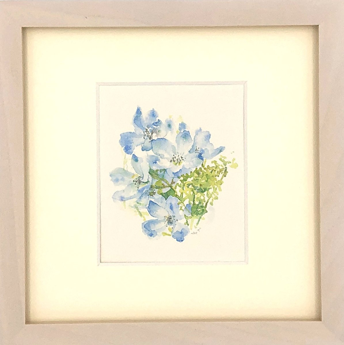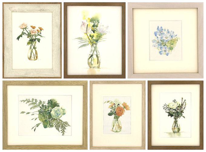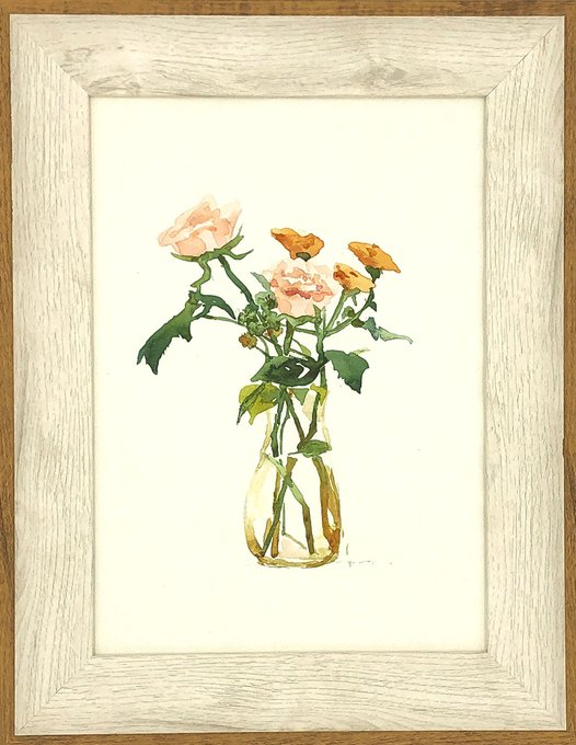 「花の定期便」の絵を額装しました。手のひらサイズ~大判の本くらいのサイズです。会場に展示しています。 #スケッチ #水彩 #水彩画 #sketch #watercolor #watercolorpainting