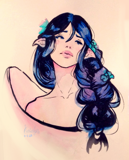 This year I wanna learn to use watercolors, so we'll (hopefully) get lots of traditional works in here :D Here's the first one! Say hi to my OC Tyam! (she's kinda shy today)🦋 #watercolor #OC #fantasy