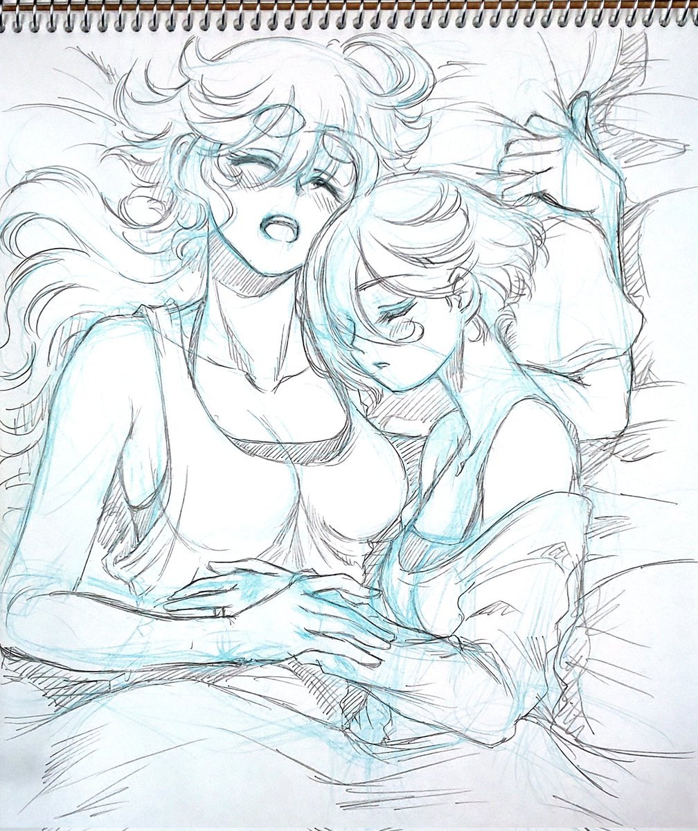 おはよーございます✨朝活終了~!🧹🧺 今日はワンフェス!避けられない案件があって私は行けないけど、参加する方は熱中症対策を充分にして楽しんでね! #リハビリ絵 は #スレミオ 休日。夏の午後。2人お昼寝。 1人寝は怖い夢も見るけど、2人なら幸せな夢を見れるよ。 #水星の魔女 #G_Witch