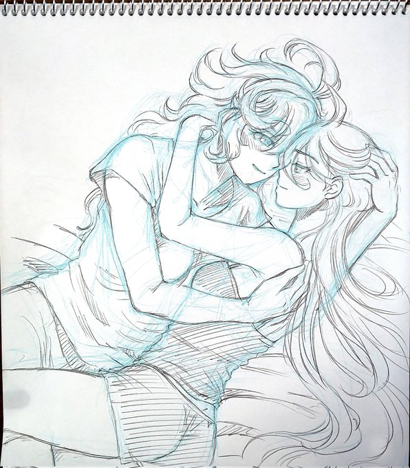 おはよーございます✨(2回目w)朝活終了~!🧹🧺 今日は曇り気味の予報。本当に良かった!コミケ参加者の皆様、お気をつけてー! #リハビリ絵 は #スレミオ 昨日の反対側。 「ミオリネさんとこうしてると、すっごく穏やかで幸せな気持ちになるから……好きなんです」 ↓ #水星の魔女 #G_Witch