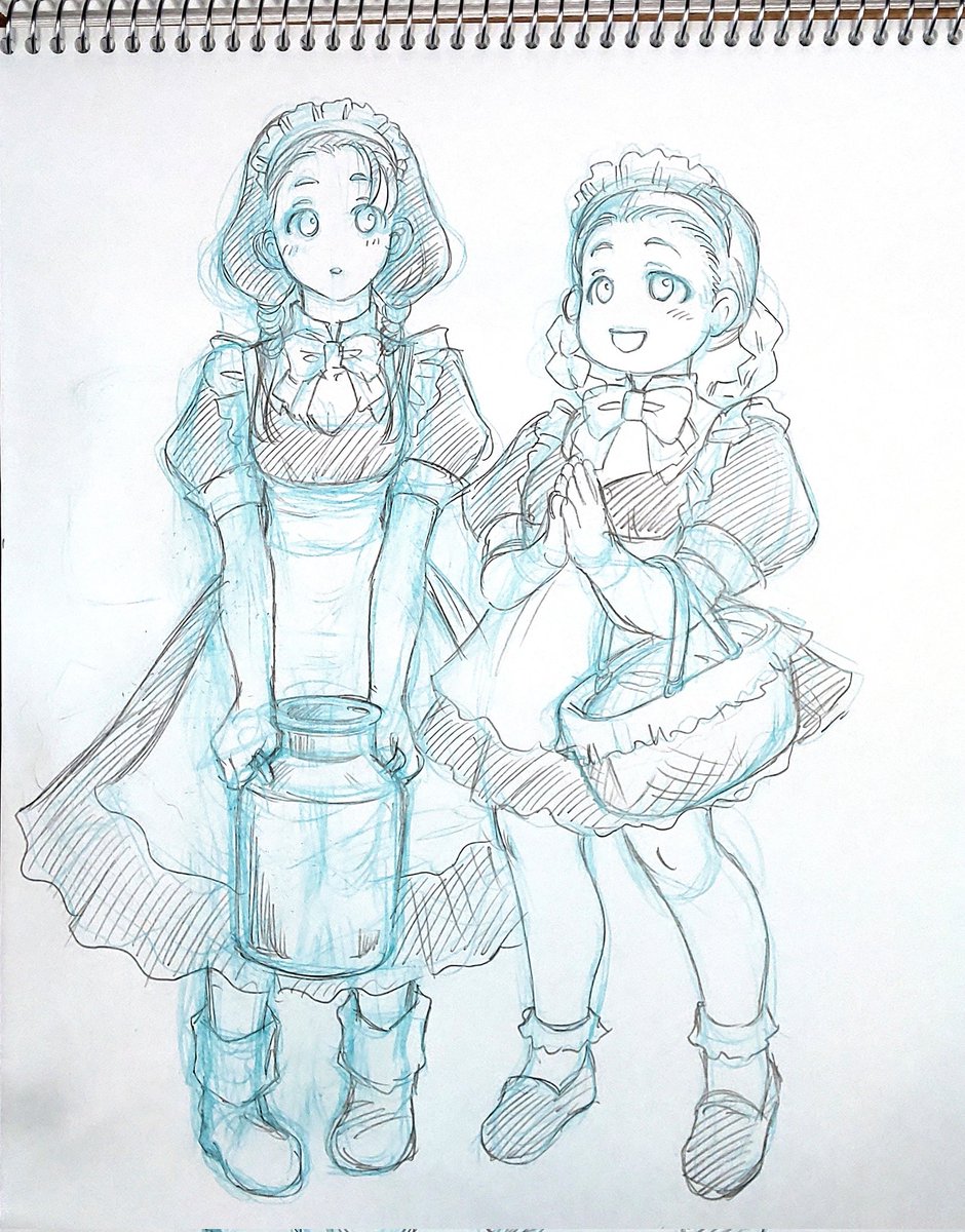 おはよーございます✨朝活終了~!🧹🧺 今日は午後から病院の定期診察。 暑くなりそうだから気合い入れよう #リハビリ絵 は 地球寮メイド隊!アリヤリリッケニカチュチュ。 スレミオと同じメイド服を、其々少しずつアレンジしました!リリッケが超似合ってる! #メイド #水星の魔女 #G_Witch