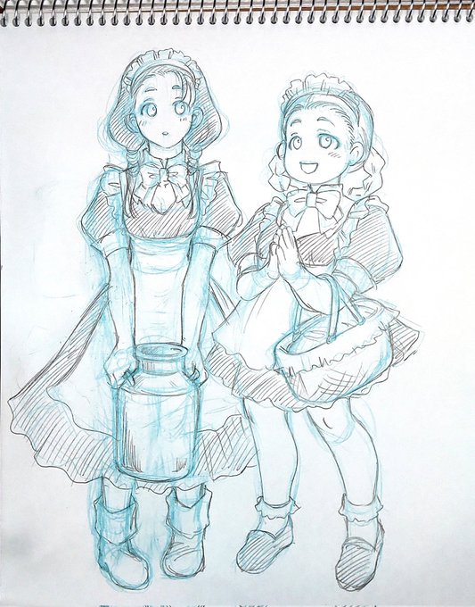 13 56 おはよーございます✨朝活終了~!🧹🧺 今日は午後から病院の定期診察。 暑くなりそうだから気合い入れよう #リハビリ絵 は 地球寮メイド隊!アリヤリリッケニカチュチュ。 スレミオと同じメイド服を、其々少しずつアレンジしました!リリッケが超似合ってる! #メイド #水星の魔女 #G_Witch 23/08/18 07:56