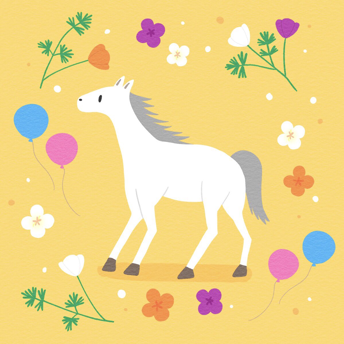 休日の思い出🎈🐎 花は自宅で育てたハナビシソウ(カリフォルニアポピー)のスケッチから。観察対象が身近にあるとイメージが膨らみやすいですね💐花菱草は橙色が多く、群生地では大地が黄金色に染まるそうです #絵描きさんと繋がりたい #ゆるいイラスト #イラスト #夏の創作クラスタフォロー祭