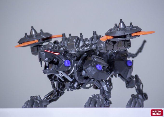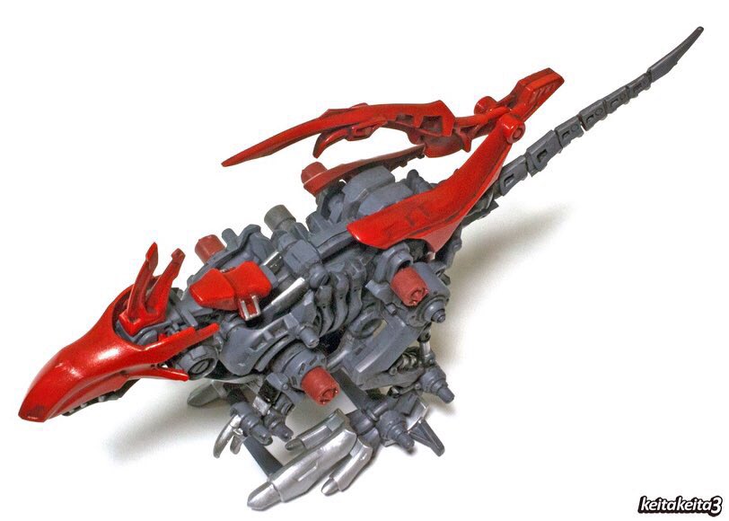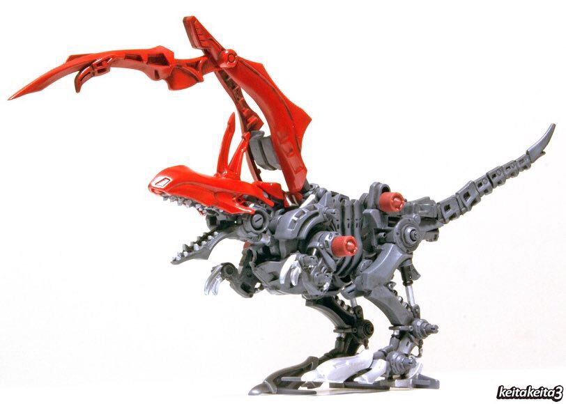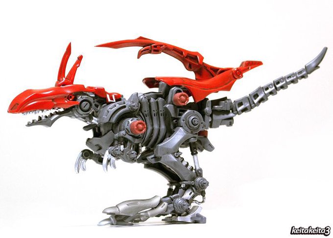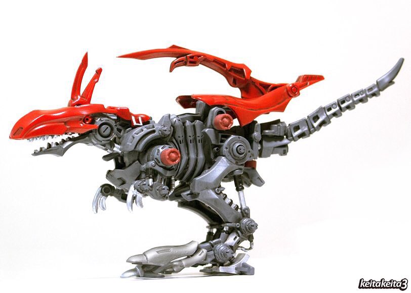 ラプトール、写真撮り直したので再度投稿😉 両腕の独立可動化、背中まわりの可動範囲拡大、その他各部ディテールアップ、各部鋭角化etc #ゾイドワイルド