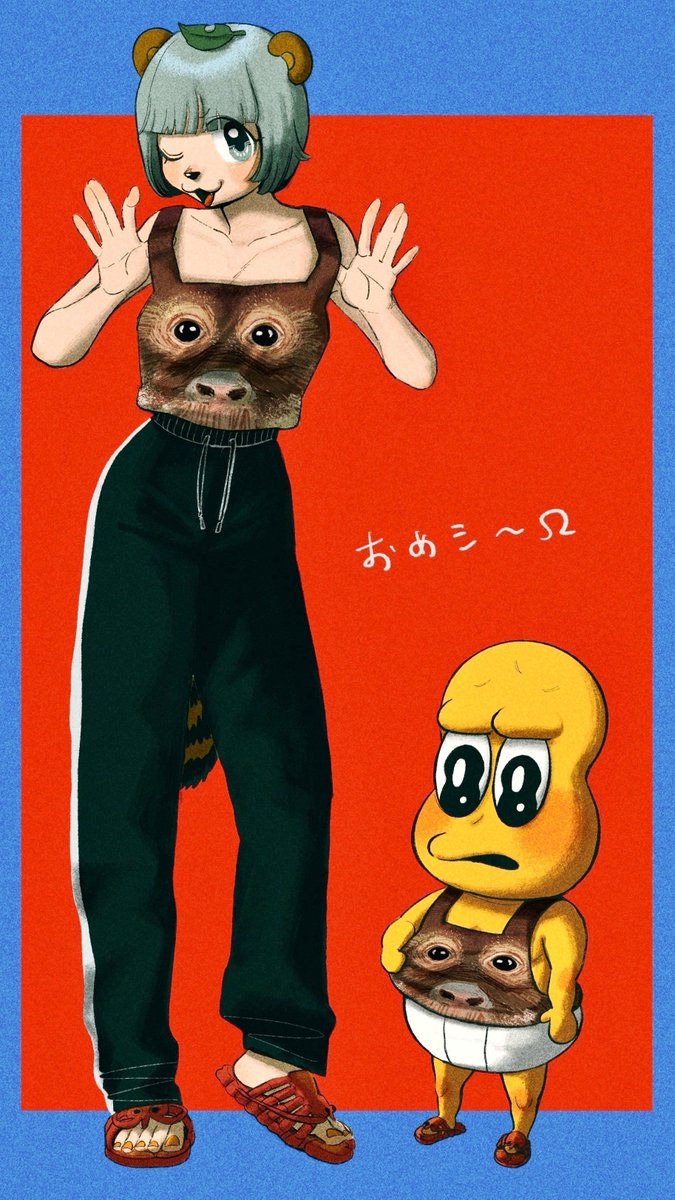 「あんちゃ、前に行きなちゃい!」 #ぽこあーと #豆きゅるおめめ #子だぬきフェイス