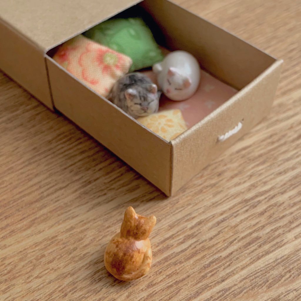 お部屋がひと段落しました。 開催が決定したらフタを作ります。 お好きなネコ2匹とマッチ箱1箱を楽しく選んでいただいてセットで販売しますね☺️ #ニャンフェス10リターンズ #ニャンフェス #コロナおさまれ